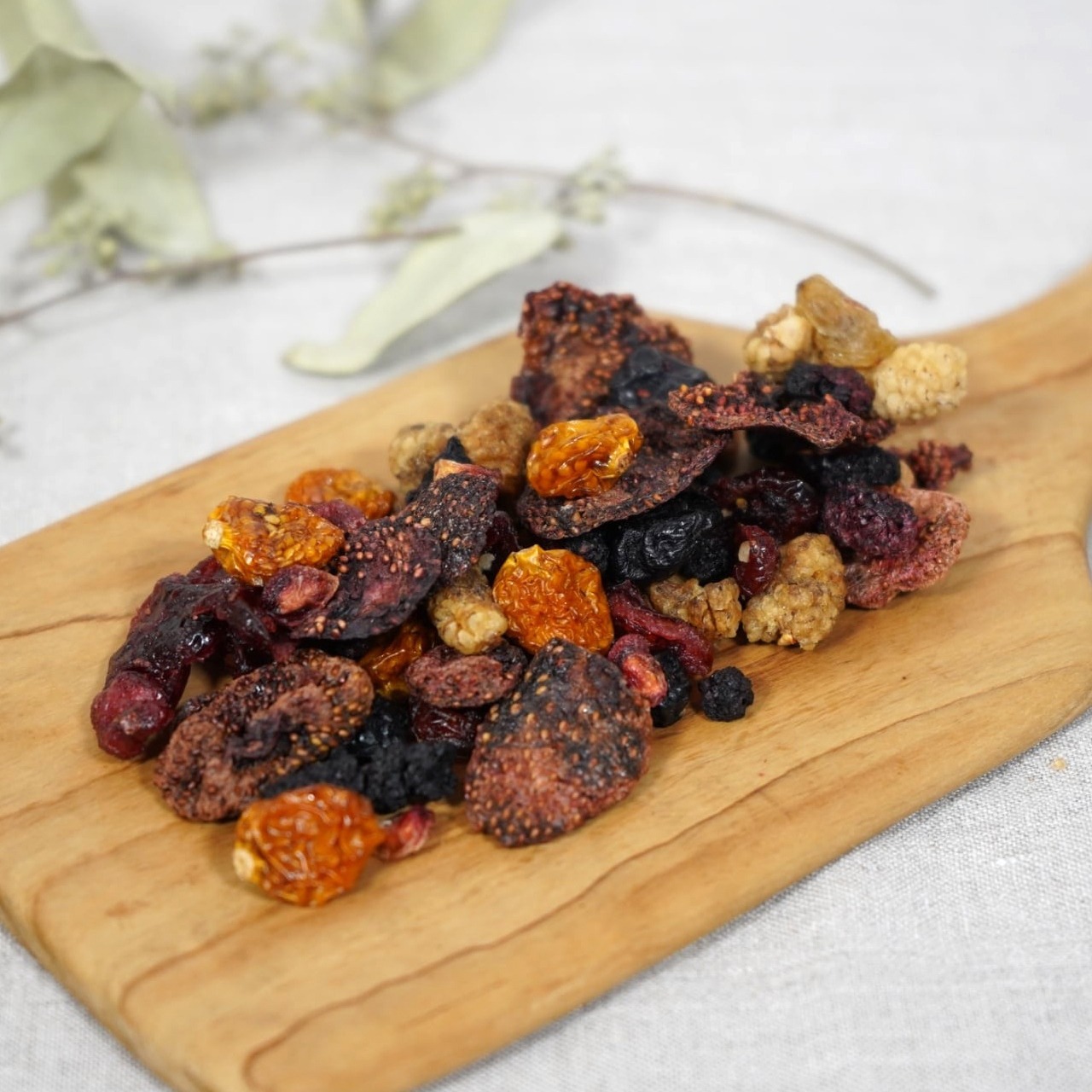 ブルーベリーやクランベリー、ザクロシードといった馴染みのなるフルーツに加えて、インカベリーや白桑の実、グリーンレーズン、ブラックマルベリーといった珍しいフルーツも一緒に詰めました。