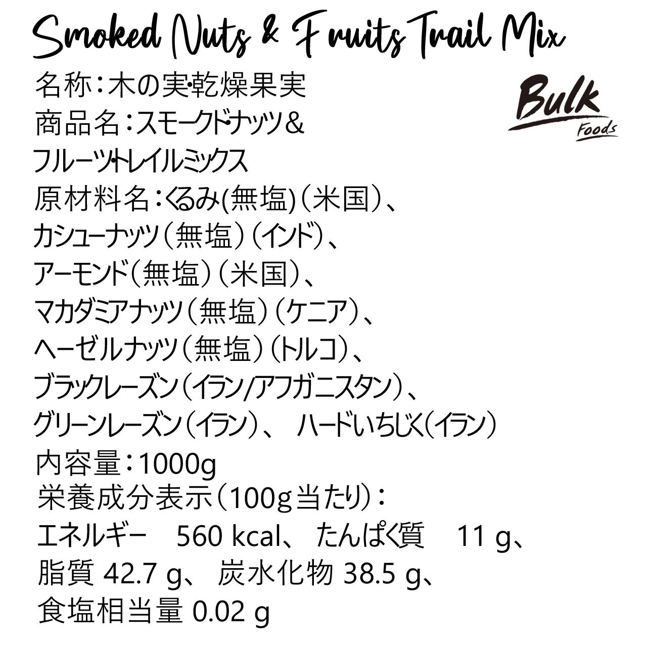 <送料無料>【1,000g】スモークドナッツ&フルーツトレイルミックス -Smoked Nuts & Fruits Trail Mix-
